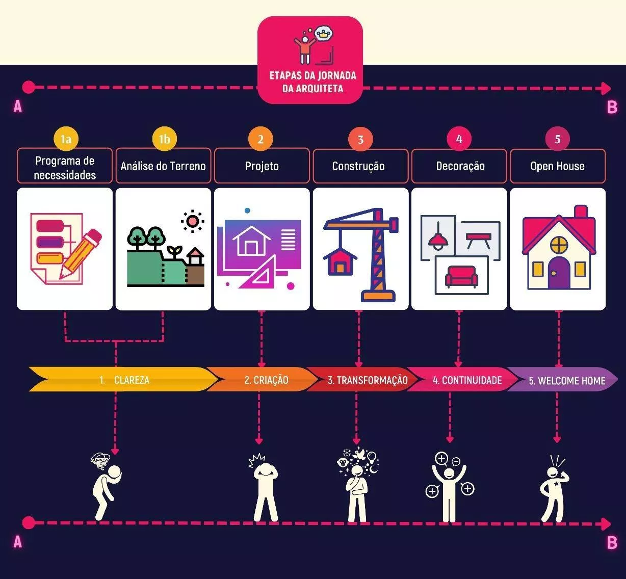 Veja abaixo o Visual da Jornada da Arquiteta ( no caso, VOCÊ!) estruturada e etapas conforme a sua evolução.