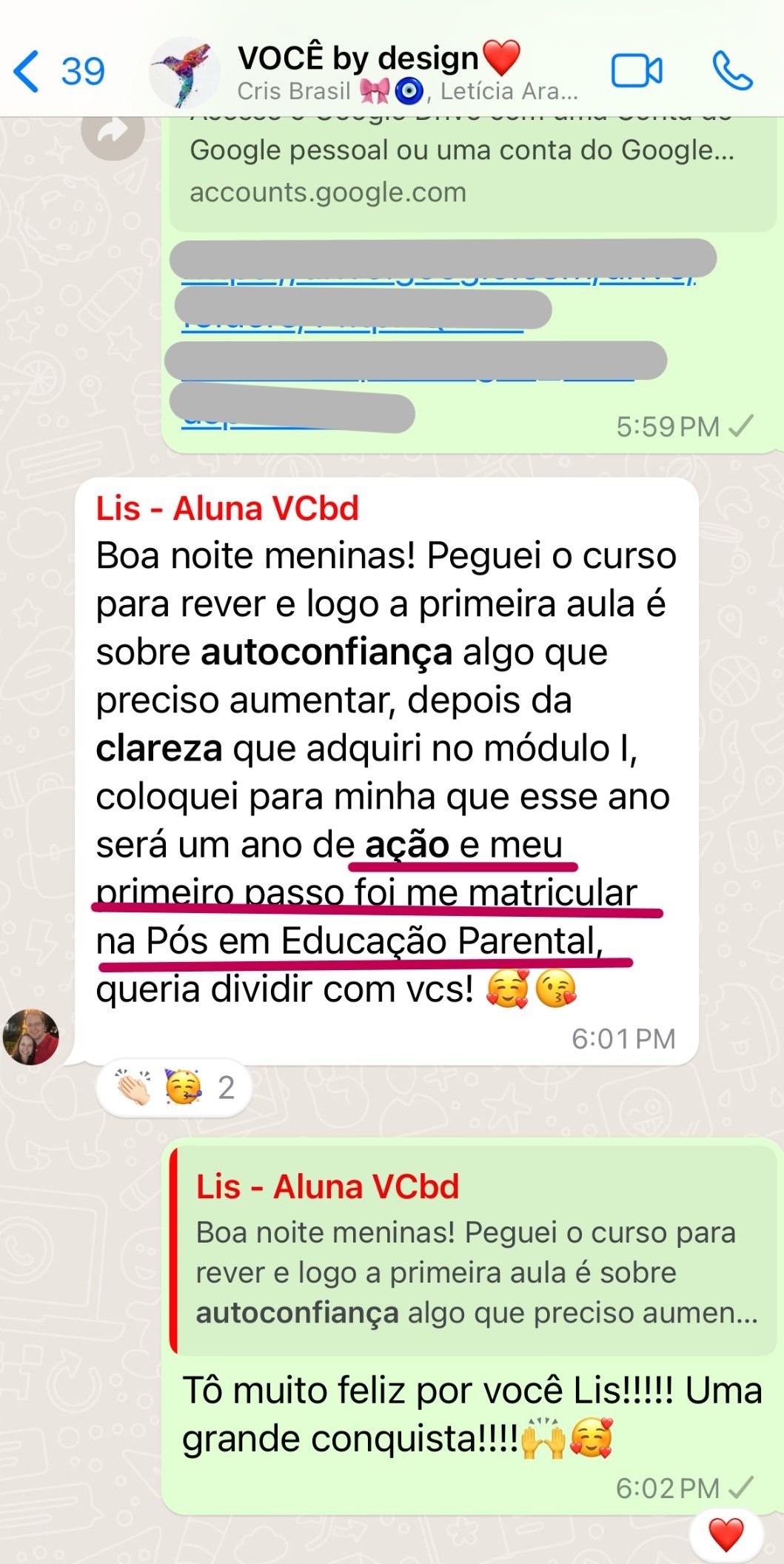 A partir da Clareza que a Lis conquistou já nas primeiras aulas, ela finalmente percebeu o que realmente queria ser : Educadora Parental