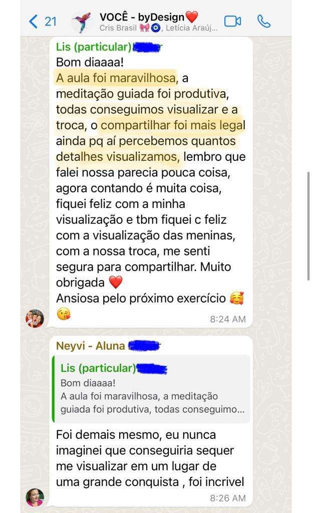 "Eu entrei no VbyDesign sem saber o que eu queria, sem ter sonhos, sem ter metas e eu consegui ter a clareza de como eu quero me sentir e do que vai me movimentar. Tendo essa clareza agora eu consigo saber como AGIR. "